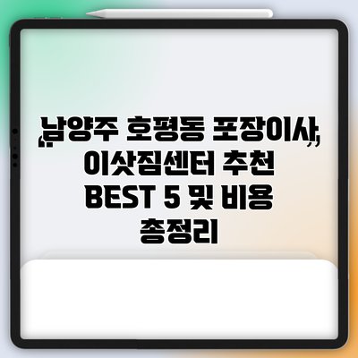 남양주 호평동 포장이사 이삿짐센터 추천 BEST 5 및 비용 총정리