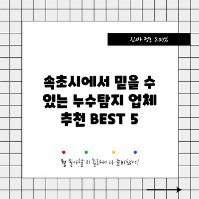 누수 문제는 집안에서 발생할 경우 곧바로 해결해야 할 중대한 사안이에요. 물이 새는 것을 방치하면 구조물에 심각한 손상을 줄 수 있으며, 이는 곧 큰 비용으로 이어질 수 있습니다. 속초시에서 누수탐지를 고민하고 계시다면, 이 글이 매우 유용할 것입니다. 다양한 업체와 그들의 서비스, 비용에 대해 알아보아요. ✅ 속초시에서 신뢰할 수 있는 누수탐지 업체 리스트를 확인해 보세요. 👉 누수탐지 … Read more