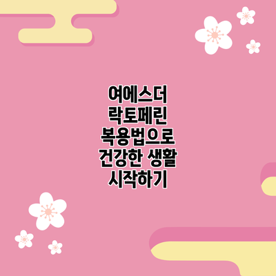 여에스더 락토페린 복용법으로 건강한 생활 시작하기